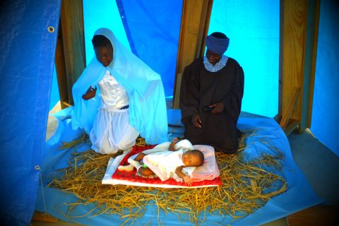 Marie, Josef a Ježíšek v podání haitských dětí. Foto: Renee Quadros